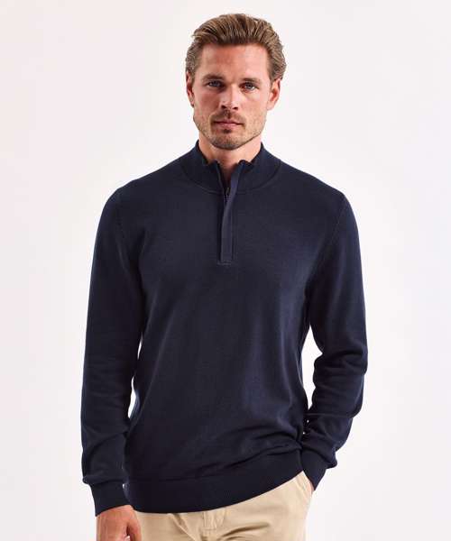 Embrace a modern silhouette with the cotton blend 1/4 zip sweater. A perfect piece for between seasons layering.