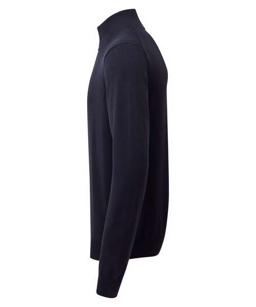 ¼ zip sweater. Decorative tuck stitching. Ribbed knit on the cuffs and hem. Product contains no branded neck label. Removable Kimble or looped garment tags. Inner seam label holds important product information on one label with a second label containing brand information which can be cut-away. Please note old stock may contain a fixed branded label.