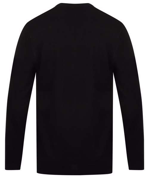 Cashmere touch acrylic yarn. Anti-pill. Smooth and soft finish. 12 gauge knitwear. Semi fashioned sleeve and neck. 1x1 ribbed hem, neck and cuffs.