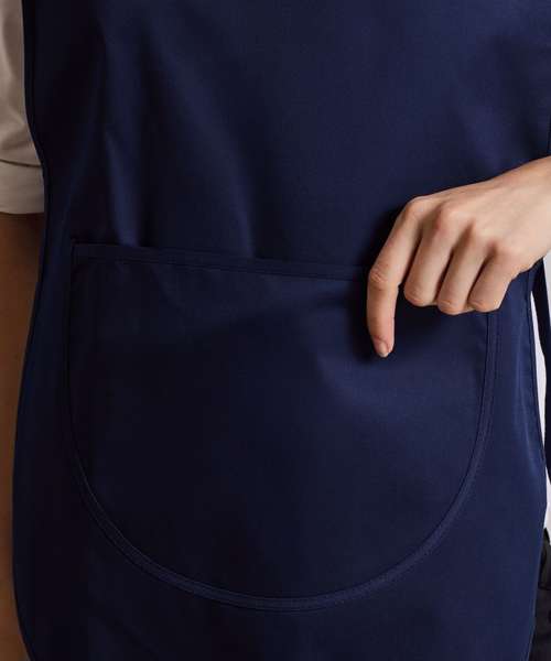 Side tabs with adjustable, stud-fastened closures. Colour-matched bias trim edges, large patch pocket. Crease resistant finish. Dimensions: Approx length 68cm.