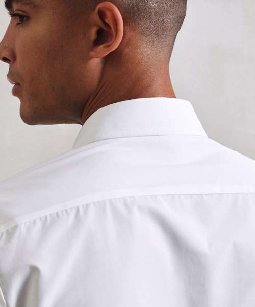 Supreme heavier weight Easycare poplin shirt with improved wear and appearance. Stiffened formal cut collar. Button fastened cuffs that will also fit cufflinks. Two button fastening detail on collar stand. Semi fitted styling. Easy cut-out label for rebranding.