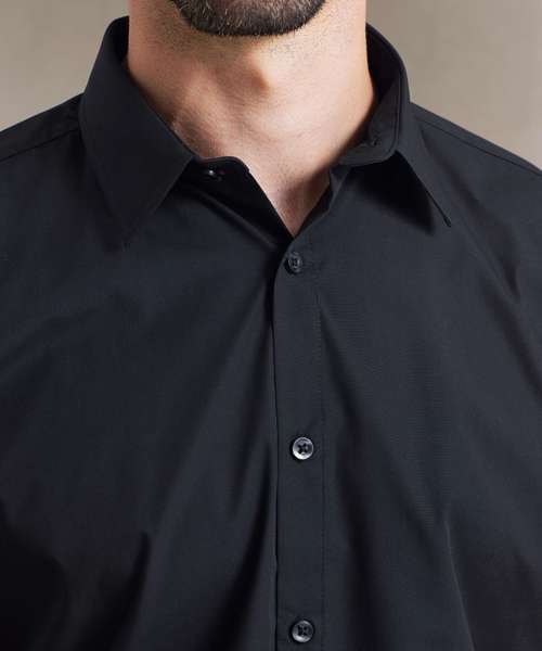 A short sleeved Poplin Shirt offering a heavier weight material for durability. The semi-fitted styling creates a fashionable look, whilst stiffened formal collar looks great when complemented by a plain or patterned tie.