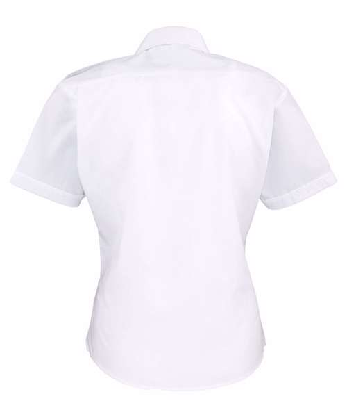 Women's short sleeve easycare pilot shirt. Stiffened collar. 2 chest pockets with button flaps. Combined pen pocket on left breast pocket. Short sleeves. Epaulettes on shoulders.