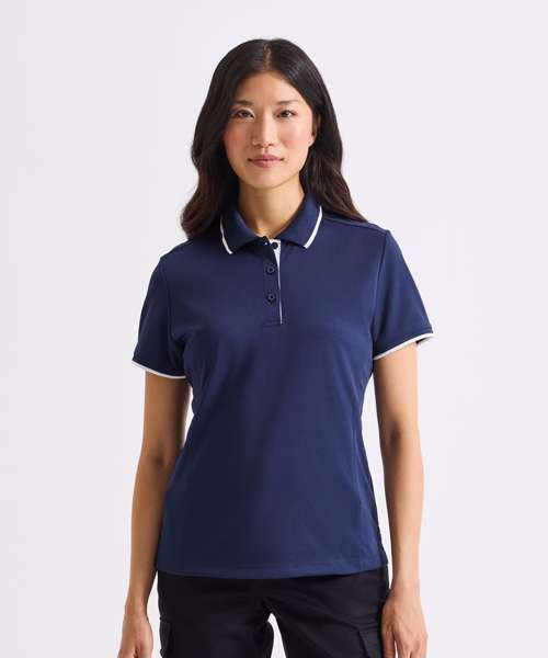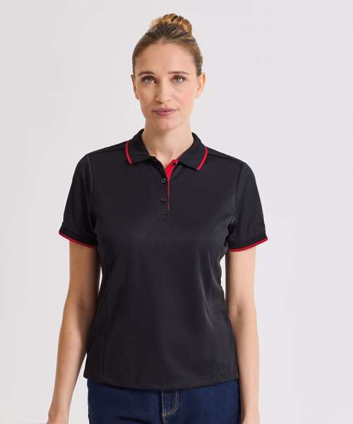 A smart choice for businesses looking for workwear that reflects company branding, these polo shirts offer a two-tone contrast colouring. The ribbed knit collar and cuffs is colour tipped as is the neckband and placket. There is a three button fastening on the placket for a casual unbuttoned look or smart fastened up style. The Coolchecker fabric is designed to draw moisture away from the body and encourage air flow, so the wearer remains fresh and cool throughout the day. Side panels create an aesthetically pleasing fitted style for women.