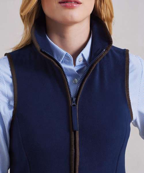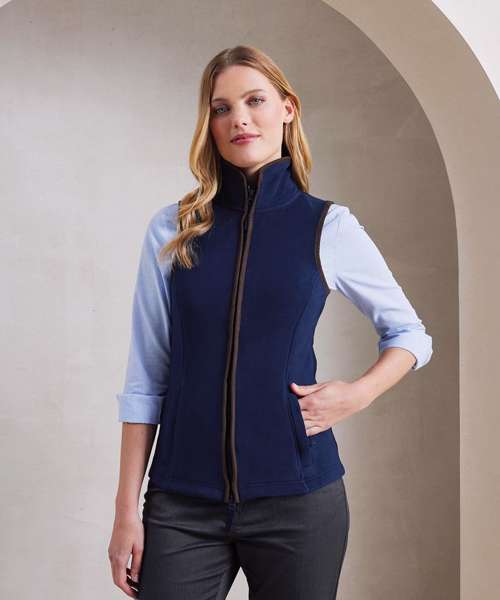The perfect solution for those who need an extra layer of warmth when serving outdoors. This sleeveless women’s gilet allows complete freedom of movement in the arms for ease of service, and the two-way zipper enables staff to unfasten from the hem up, to access a pocket apron underneath. Designed with a slight curve to the back hem for a more feminine look. Contrast trim detail to the pockets, arm holes, collar and zip completes this attractive fleece gilet.